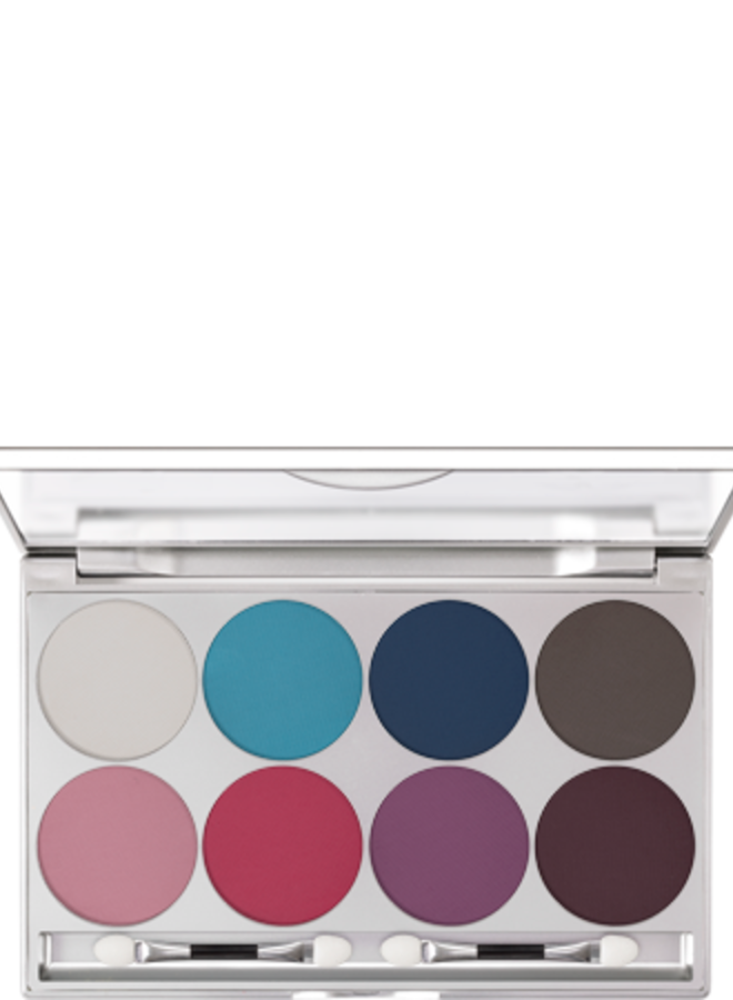 Viva Brilliant Color in een elegante cassette met 8 kleuren. Viva is een nieuw make-up concept voor ogen, gezicht en lichaam. Viva Brilliant Color is een geperste poeder met intensieve, glanzende kleuren. Ze kunnen droog en vochtig aangebracht worden met een kwastje of sponsje. Wanneer de kleuren vochtig opgebracht worden, zullen de kleuren nog beter blijven zitten en sprankelender zijn. Glanst dankzij Mica pigmenten, die geen metalen bevatten.