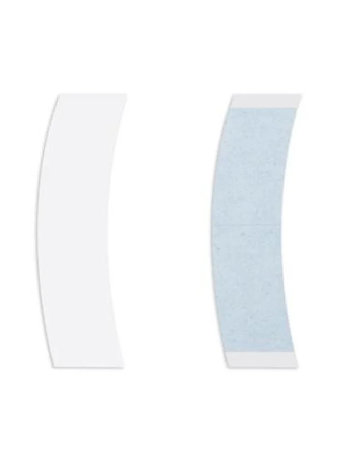 De houdbaarheid van haarwerktape is afhankelijk van temperatuur, vochtigheid en talgproductie. De liner van deze tape is blauw, maar de daadwerkelijke haarwerkstrips zijn transparant.