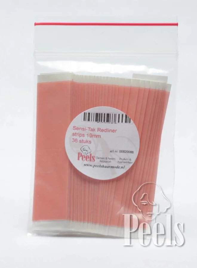 Sensi-Tak Redliner is een tape die weinig residu achterlaat en daarom een schone tape om te verwijderen. Hierdoor is dit een populaire tape voor polyurethaan. Deze haarwerktape heeft een beetje glans en daarom adviseren we deze tape niet voor lace units. We raden aan deze plakstrips wekelijks te vervangen. De voering van deze plakstrips voor haarwerken en pruiken is rood, maar de tape zelf is helder.